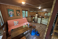 На первом этаже кухня-гостиная, на втором этаже спальня и санузел. В спальне большая гардеробная и выход на балкон. Котедж украшен авторскими рисунками.