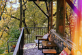 Уютное место, шумят деревья, поют птички. Коттедж находится на горке, нужно подниматься по лестнице.