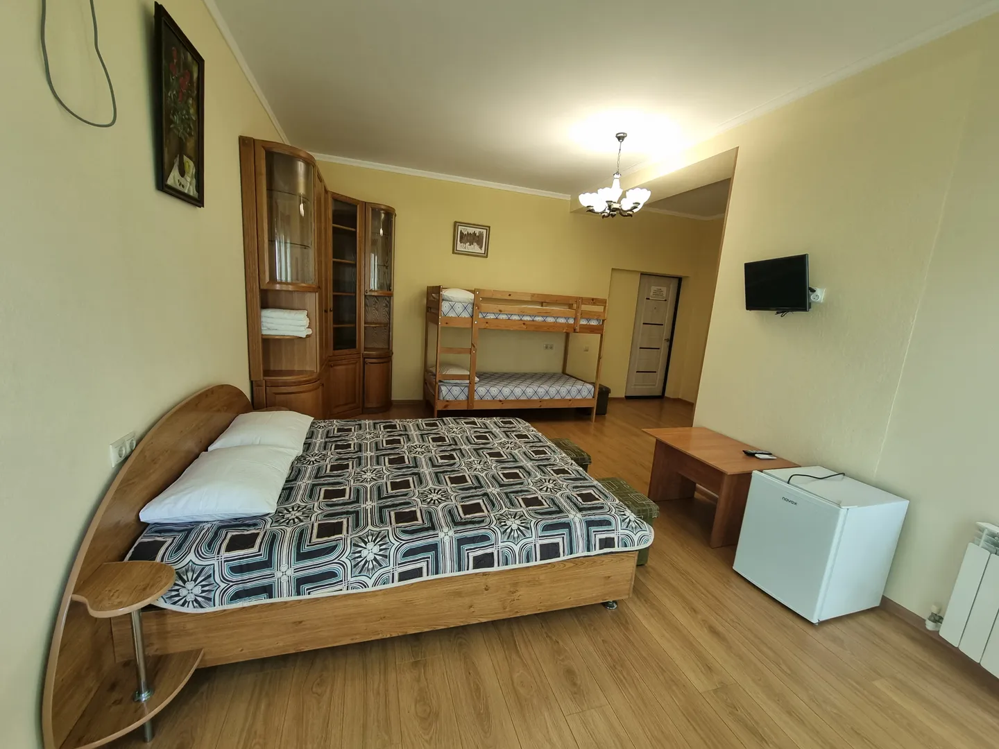 1 двуспальная кровать, 1 двухъярусная кровать