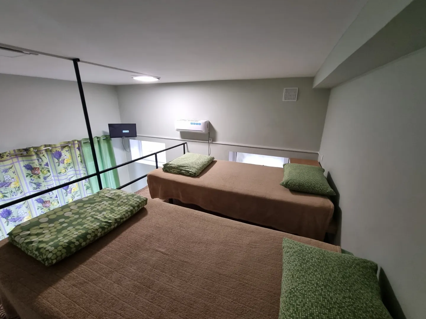 В номере 2 односпальные и 1 двуспальная кровати, туалет, душ.