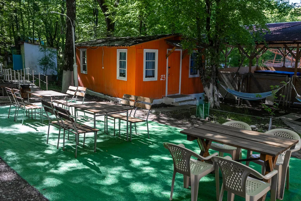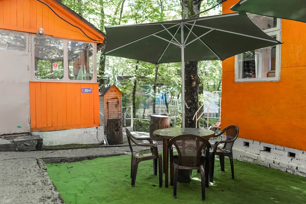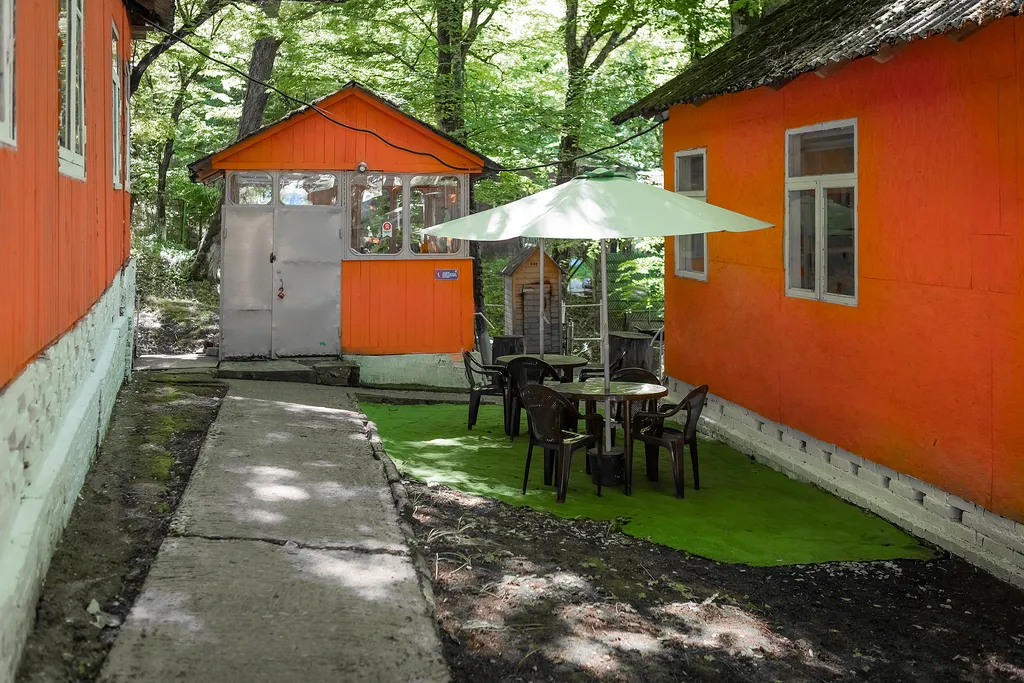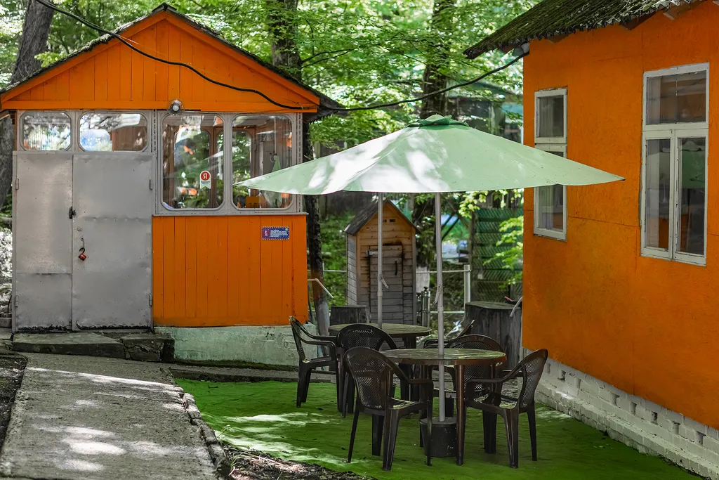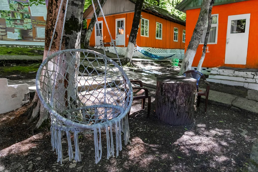 База отдыха удачно расположена в тени деревьев для спокойного и душевного отдыха.