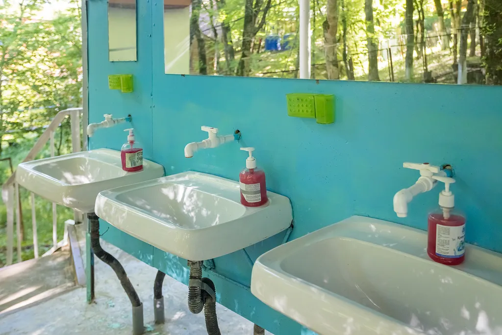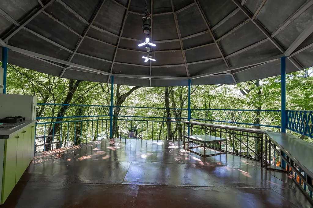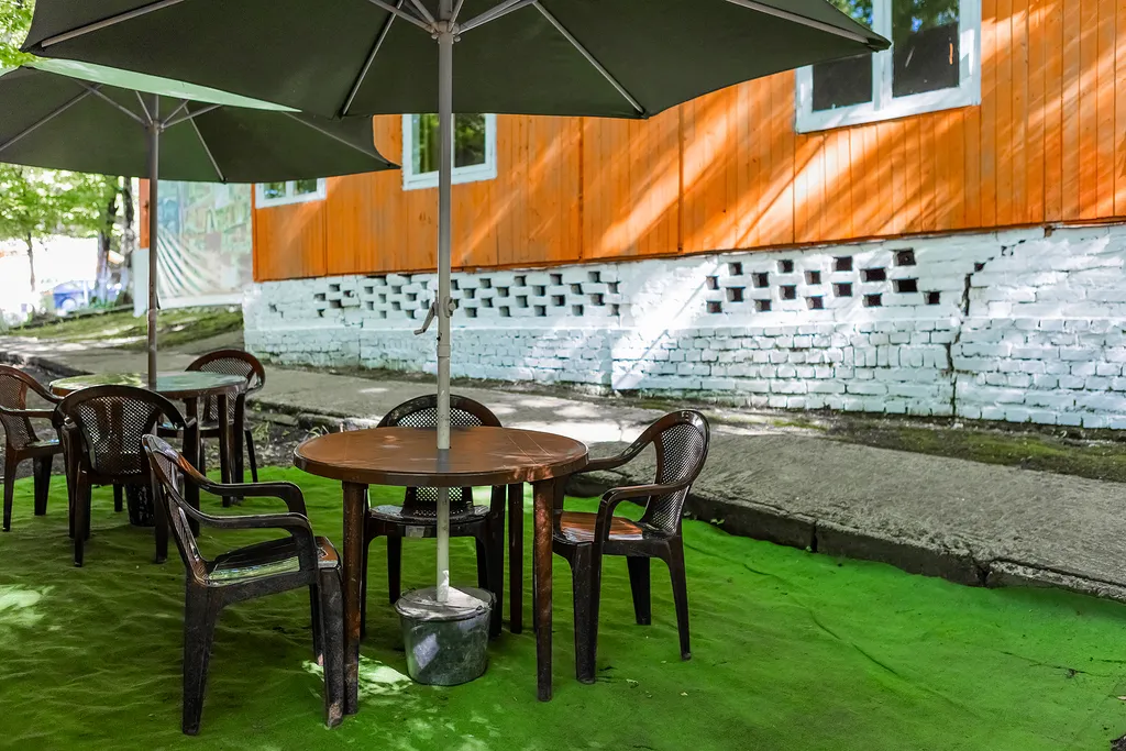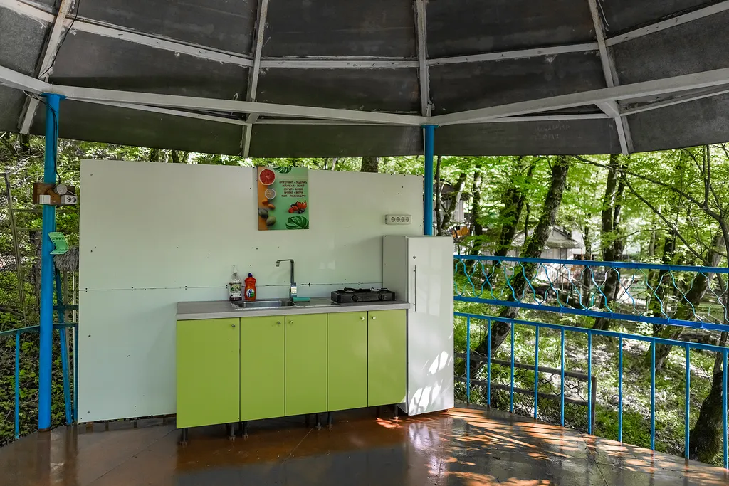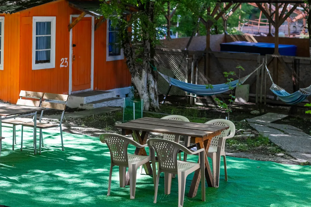База отдыха удачно расположена в тени деревьев для спокойного и душевного отдыха.