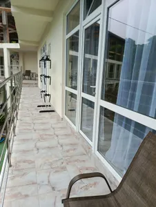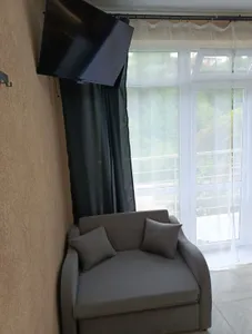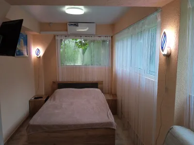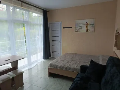 Номер минималистичный. Для семьи из трех человек. Кухня и туалет отдельные. Душ, к сожалению, уличный. Номер подойдет, чтобы оставить вещи, перекусить и заночевать. До пляжа идти минут 10-15 по спуску с горы. Сильно советую не загружаться, поскольку потом по этой же горке подниматься. Пляж дикий, чистый, можно найти свободные места. Добираться лучше на машине. Рядом платформа электрички. До Туапсе ехать пять минут, но можно дойти и по пляжу. Если хватит сил. - Не минусы, но замечания: - - Не подходит для некурящих. Места для курения нет, курят рядом с номерами. Хоть и убеждали нас, что дым не летит, запах табака в номер попадал. Учитывая, что детская кровать стоит у окна, это не очень хорошо. - В шкафу отсутствуют полки. Одежду можно повесить, но не разложить. По итогу, наша одежда весь отдых пролежала в сумках. - Уличный душ. Лейку не снять. Мыть детей было неудобно. - - На кухне индукционная плита с одной комфортной. Еду приходилось готовить по очереди. - Кулер вместо чайника. В целом, если не заморачиваться на замечания, то вполне приемлемый бюджетный вариант.