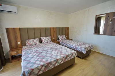 Во всех номерах есть сплит-система, холодильник, ТВ, собственная ванная комната с душем и туалетом, сушилка. Ванные и спальные… принадлежности входят в стоимость проживания