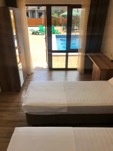 Понравилось все! Замечательное, тихое, уютное место. Чистота, уют. Лес прямо за домиком. Есть мангал, можно самостоятельно жарить овощи, мясо, рыбу. Соловей пел нам песни с утра до вечера. До моря не далеко (минут 7-8). Чистенький не большой бассейн. До ближайшего аквапарка 15 минут на такси. Продуктовые магазины в шаговой доступности. Спасибо Елене за отзывчивость и гостеприимность.